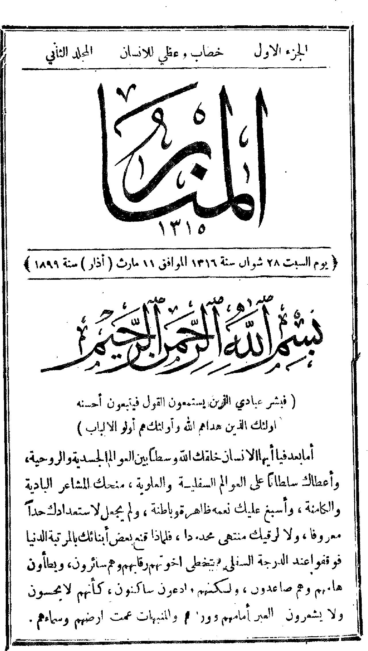 Indeed, Shaykh ‘Abduh, who held the position of Grand Mufti of Egypt, did not only demonstrate a mastery of the intricacies of Christian theology and European history. In the publication he founded with Rashid Rida, al-Manar, his written exchanges with the Lebanese-Syrian Christian journalist Farah Antun revealed that Antun’s argument was more intent on comparing Christianity favorably than bettering society through secular reform.
